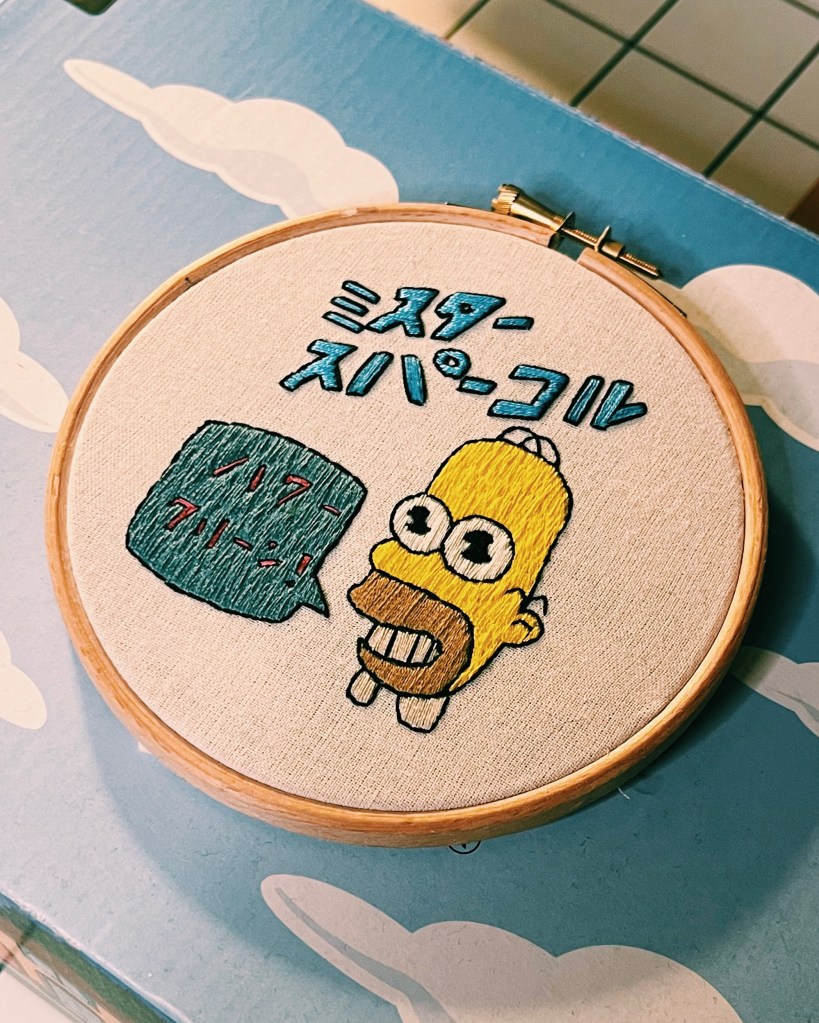 if you’d like to buy this hoop, give me a shout and we’ll see what we can do. and if you have anything simpsons-related you’d like stitched, please get in touch. love you, bye. x
